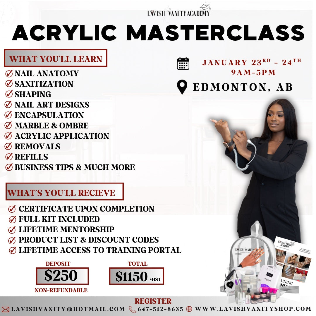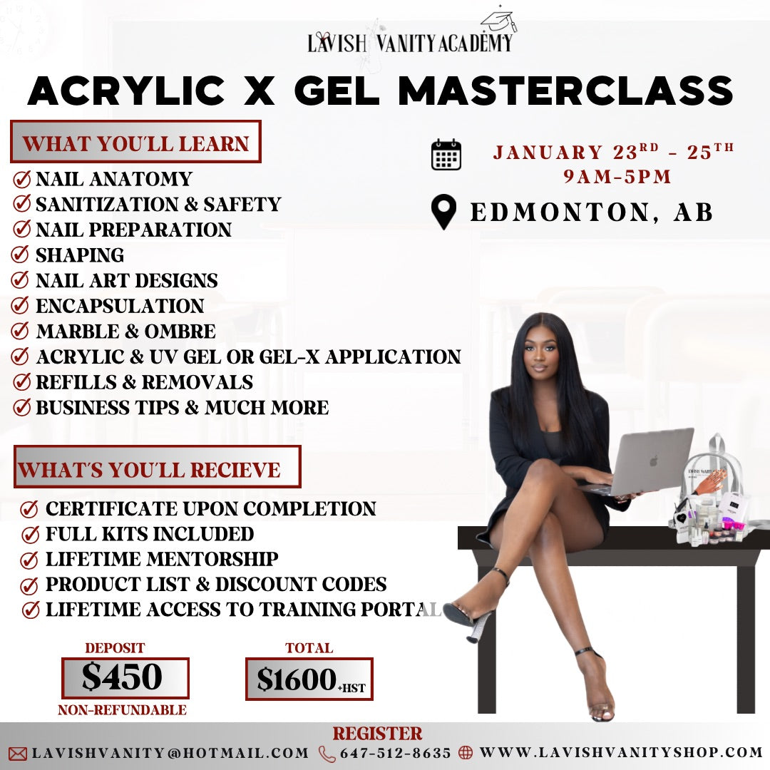 Our masterclass will cover everything, from sanitation, nail prep, nail anatomy, application, gel application, marbling, 3D art, nail form, ombré, bling, nail art and marketing NO EXPERIENCE NEEDED. We will teach you everything you need to know! After taking our course you will have EVERY THING YOU NEEDTO GET YOUR BUSINESS STARTED.